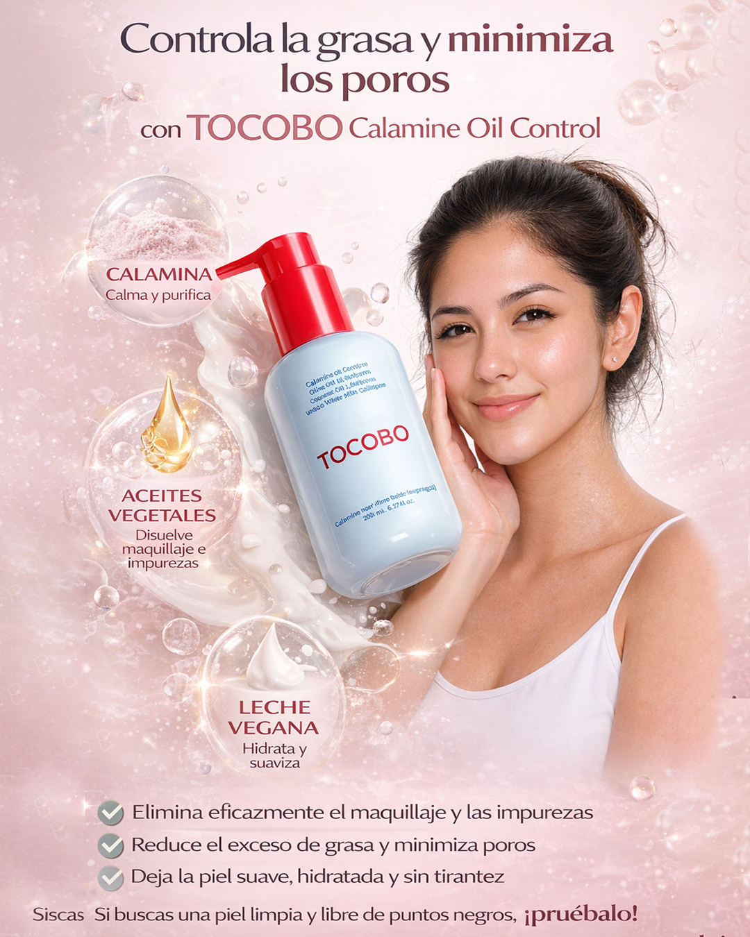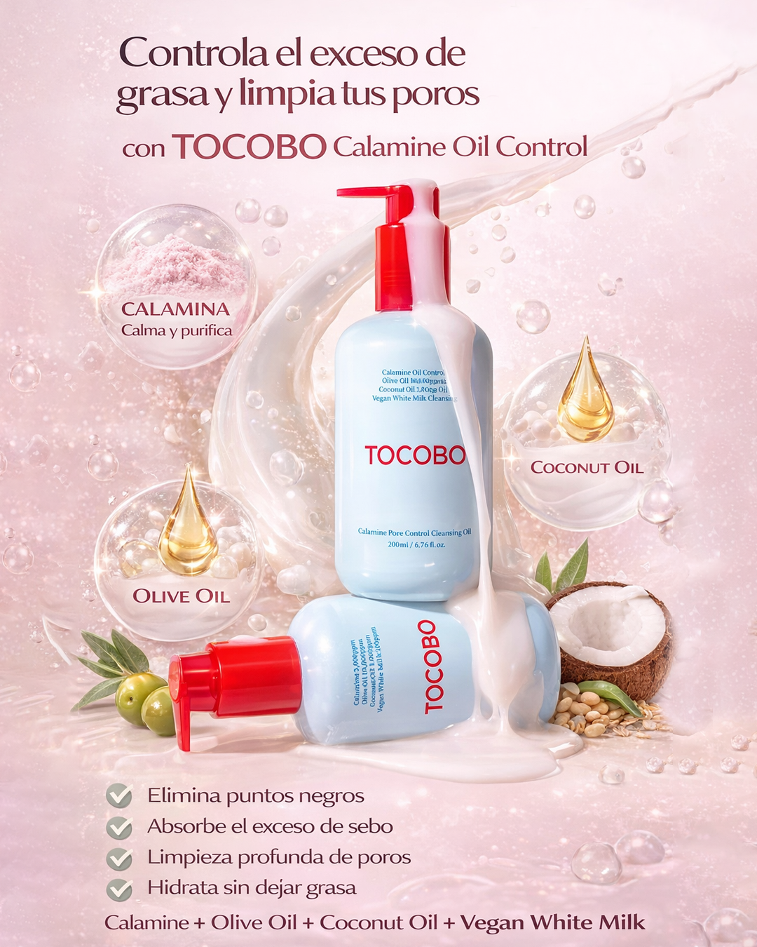 Este limpiador en aceite elimina maquillaje e impurezas mientras controla el exceso de grasa y minimiza poros y puntos negros. 🫧 Su fórmula con calamina, aceites vegetales y leche vegana calma e hidrata profundamente, dejando tu piel suave y sin tirantez. ✨🥛